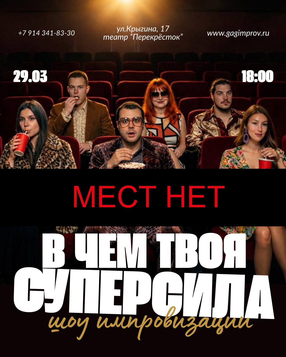 | Формат шоу Шестеро талантливых комиков выходят на сцену с пустыми руками — без сценария, без заготовок. Всё, что у них есть — ваши идеи, их опыт и юмор. В течение часа на ваших глазах родится целый мир со своими героями, злодеями, любовными драмами, бытовыми проблемами и, конечно же, мощной дозой смеха Это как сериал, который создается прямо сейчас Как стендап, где шутки рождаются в моменте Как театр, только с комиками в главных ролях |